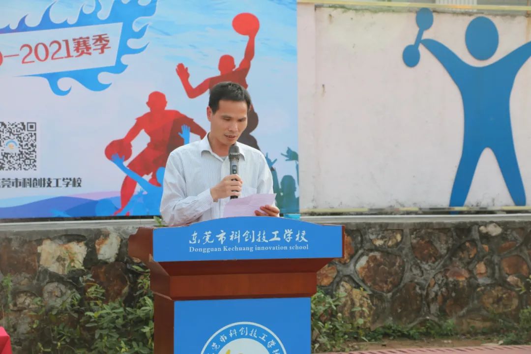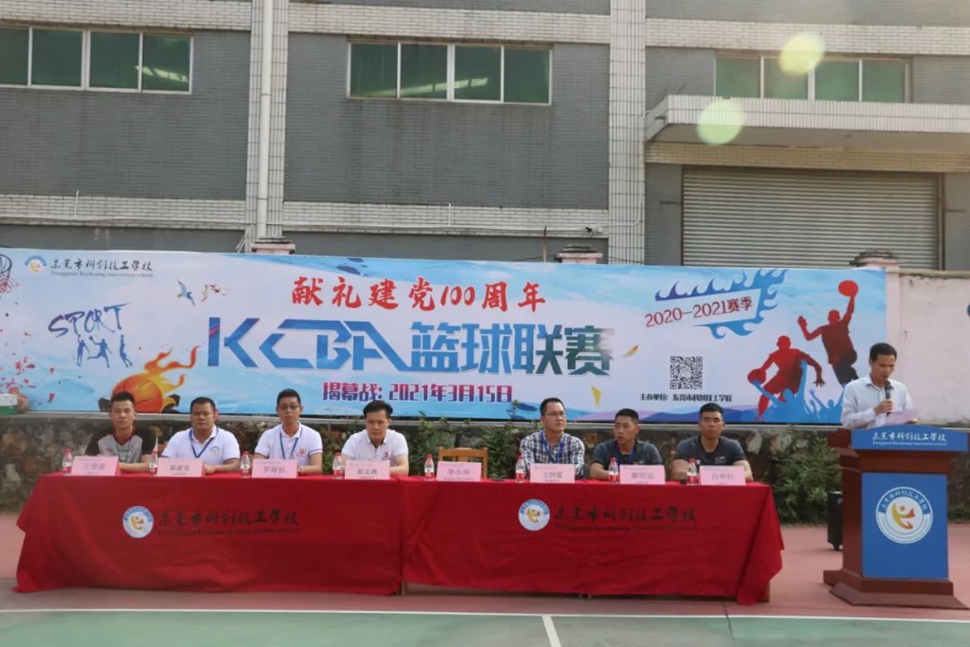 为向建党100周年献礼,积极响应全民运动的号召,全力推动校园体育运动的蓬勃发展,全面展示我校学生的春春活力,进一步加强体育锻炼,提高凝聚力,丰富课余生活,让同学们有一个充分展现自我的平台。3月15日下午,东莞市科创技工学校2020-2021赛季KCBA篮球联赛在篮球场正式开幕。常务副校长彭文涛先生、德育副校长李小环先生、办公室主任罗海杭老师、教务科科长王同富老师、总务科科长陈家忠老师、主裁判长白华轩老师、副裁判长廖明运老师和王思原老师,以及36支参赛代表队参加了开幕式。开幕式由我校2019级会计专业学生、篮球爱好者李晶晶同学主持。