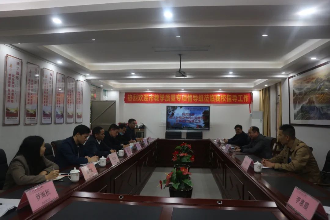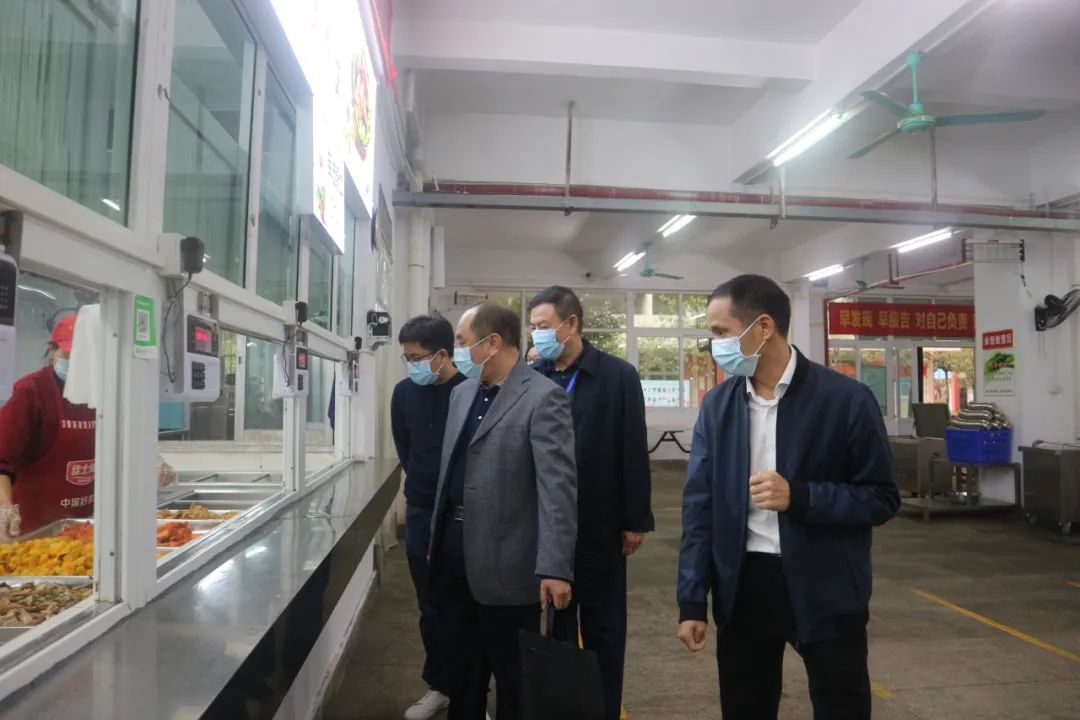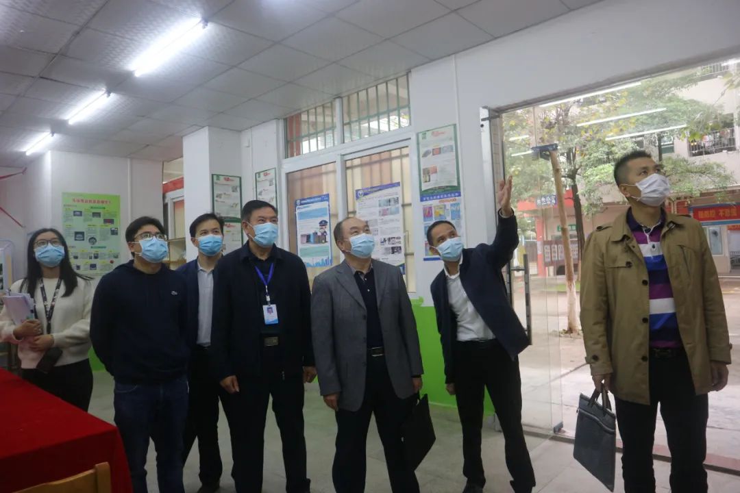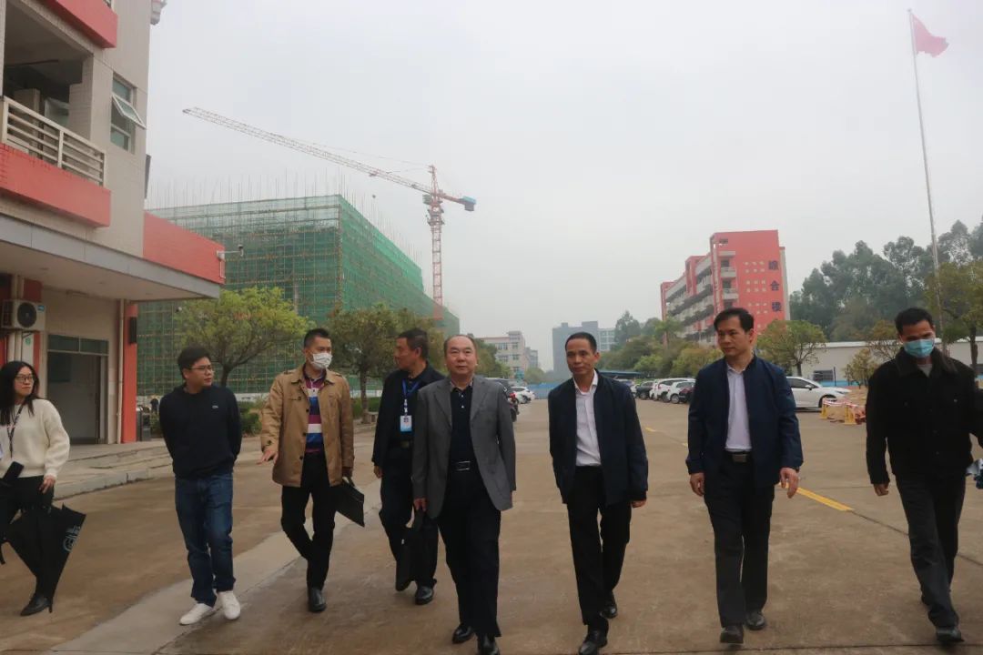 为全面了解我校2021年春季开学情况,确保开学工作平稳顺利,3月4日下午,市人社局三级调研员香卓伦、三级主任科员谢贤仔、大岭山分局负责同志一行莅临我校检查指导工作,我校董事长刘文中先生、校长朱作友先生、常务副校长彭文涛先生、德育副校长李小环先生以及部分职能部门负责人陪同检查。