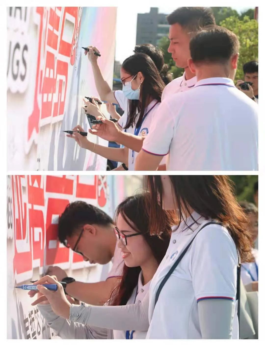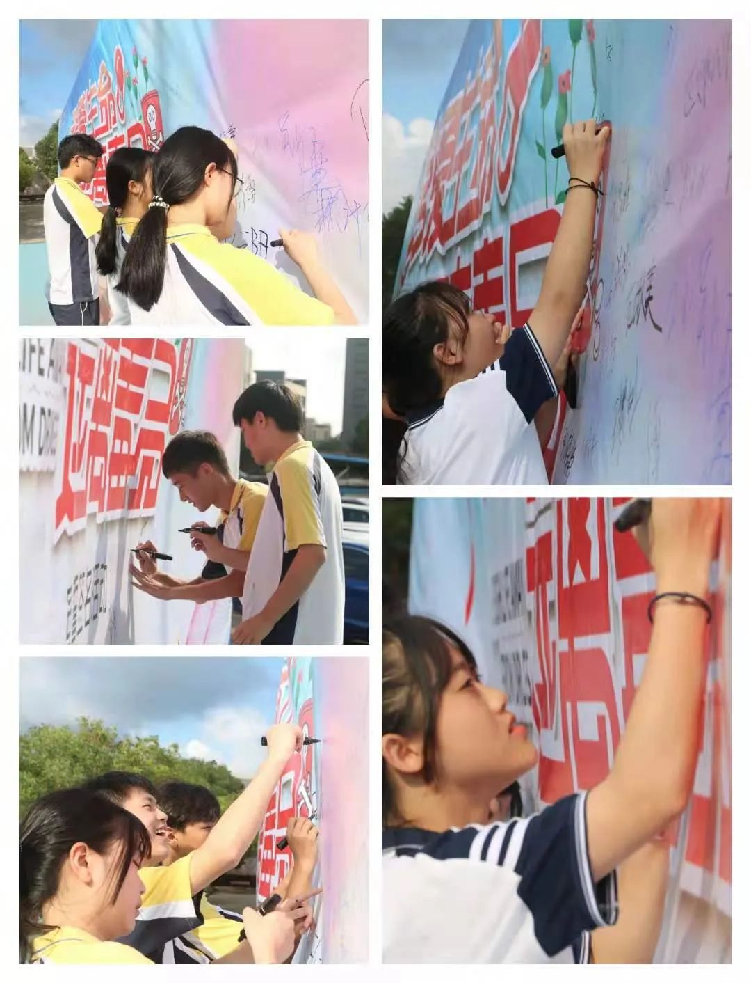 同学们在禁毒主题板上签名