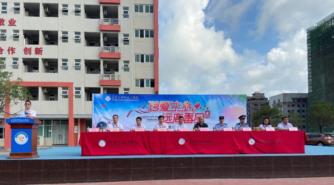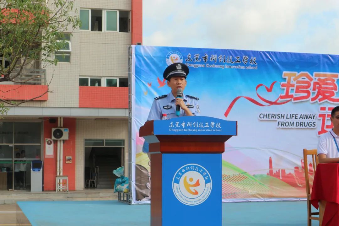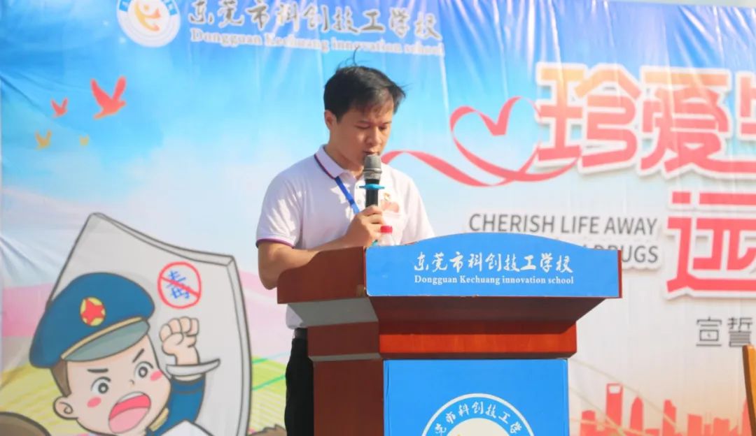 彭文涛常务副校长在活动现场致辞,他表示:全体师生应该树立正确的人生观、价值观、世界观;珍爱生命,远离毒品,莫沾毒品,莫交毒友,创建绿色、无毒校园。