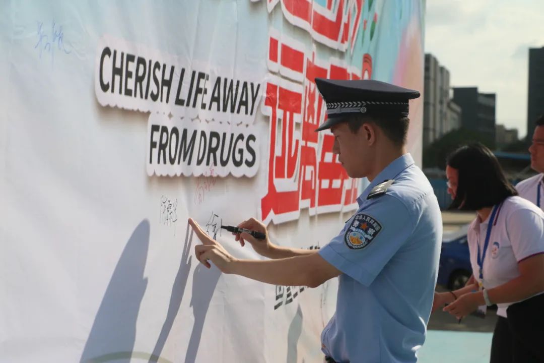 徐胜胜警官在禁毒主题板上签名
