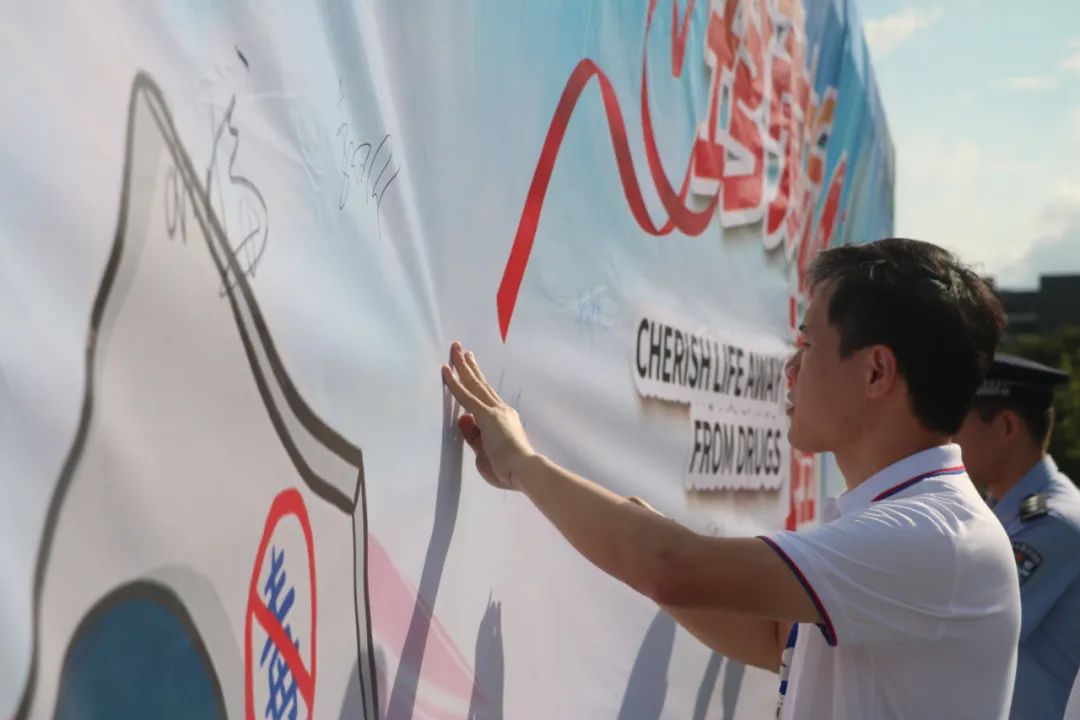 我校教师在禁毒主题板上签名