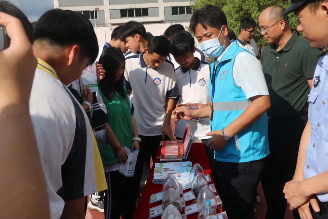 活动现场,大岭山镇禁毒办专职工作人员引导学生观看了仿真毒品模型,现场讲解毒品的特征和危害,加深青少年预防毒品的认识,还为同学们介绍毒品的种类和传播方式,使同学们深刻认识到毒品对社会、家庭、个人产生的巨大危害。工作人员还为现场的师生派发了上千份禁毒宣传资料。