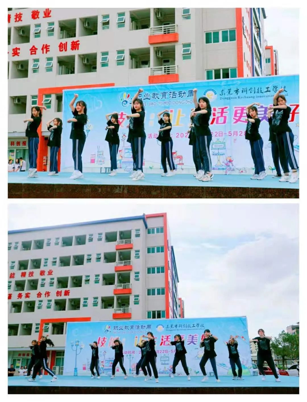 职业教育活动周开幕后,同学们在舞台上展现了最美的舞姿。