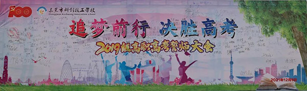 12月9日下午,我校在运动场隆重举行“追梦前行  决胜高考”2019级高职高考誓师大会。彭文涛常务副校长、教务科科长王同富、办公室主任兼学生科科长罗海杭、教务科副科长李福利、办公室副主任王志洪出席了本次大会,全体高职高考班师生参加了会议。