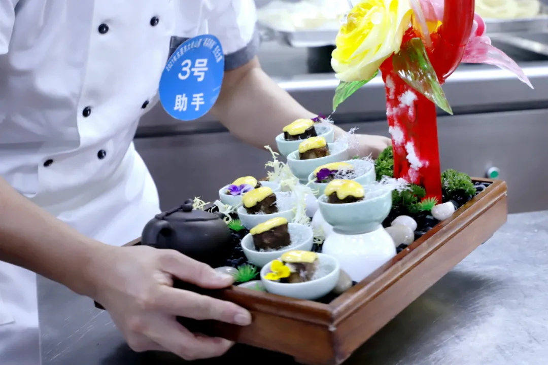 中竞赛采用中式烹饪技能团队赛方式进行,每支队伍按要求完成两道菜肴,分别为指定菜式和创意菜式。赛场上,各位参赛选手各显神通,纷纷拿出自己的绝活,通过煎、炒、蒸、煮,以及精心摆盘,一道道色、香、味俱全的精美的佳肴,一盘盘造型独特的拼盘完美出炉,引人垂涎不已。除了造型抢眼,不少菜的味道和风格也是独树一帜,如“果木烤雪花牛肉粒”、“鱼跃龙门”等,除此以外,大岭山“荔枝柴烧鹅”等本土特色菜式也在传统中有所创新,通过本次比赛得以全新亮相。