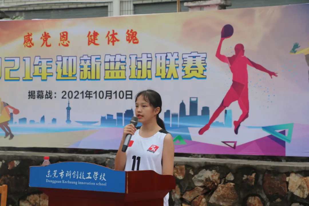 感党恩,健体魄。10月10日下午,东莞市科创技工学校2021年迎新篮球联赛在操场如期举行。朱作友校长,彭文涛常务副校长,部分职能部门负责人,裁判长出席此次开幕式并在主席台就座。这将是一次顽强拼搏、凝聚青春力量的体育盛宴,运动健儿们将齐心聚力,奋力拼搏为班级争荣誉!