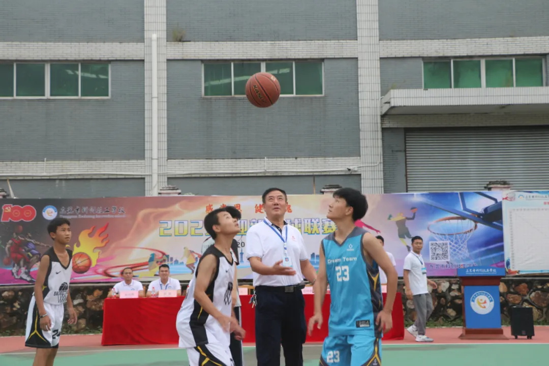 运动员代表孙耀宣誓:严格遵守比赛规则和赛场纪律,服从裁判,尊重对手。 裁判员代表蒋建明宣誓:严格遵守规程,公正裁决,严肃认真。 朱作友校长宣布本次比赛正式开幕并为揭幕战授球,战鼓擂响,篮球逐梦之旅正式启程。
