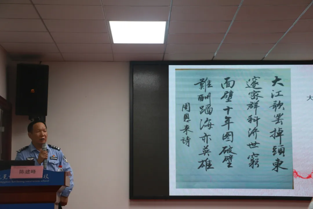 本次讲座,我校特别邀请到东莞市作家协会大岭山作协分会主席,广东红色教育·东方书院客座教授,现东莞市公安局大岭山分局二级警长陈建峰先生为主讲人,深入解读红色经典诗词,讲述中国共产党光辉历程。