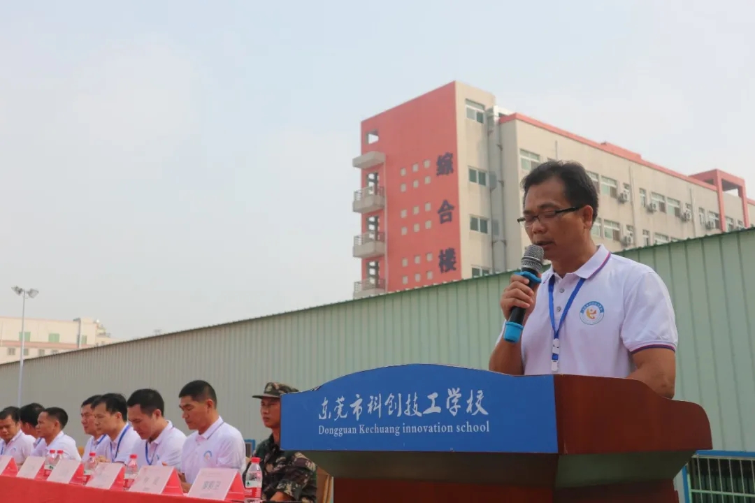 9月6日上午,东莞市科创技工学校军训闭营仪式在学校运动场隆重举行。董事长刘文中先生、校长朱作友先生、董事刘世华先生、常务副校长彭文涛先生、总教官钟灵先生及学校各职能部门负责人出席本次会议。