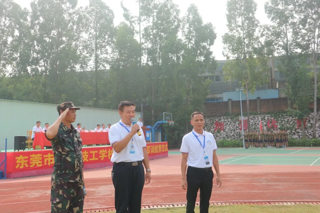 最后,董事长刘文中先生宣布:东莞市科创技工学校2020级新生军训胜利闭营。