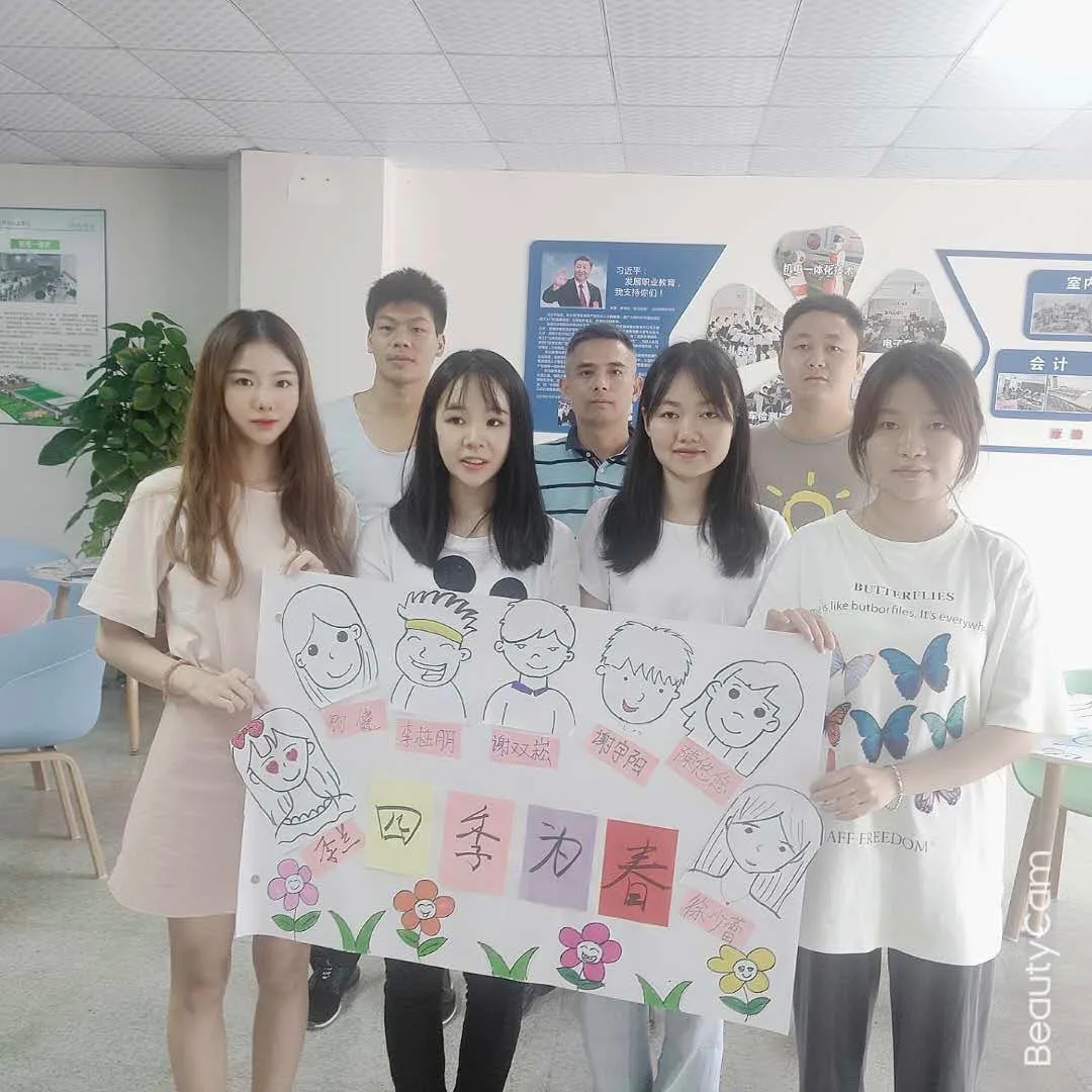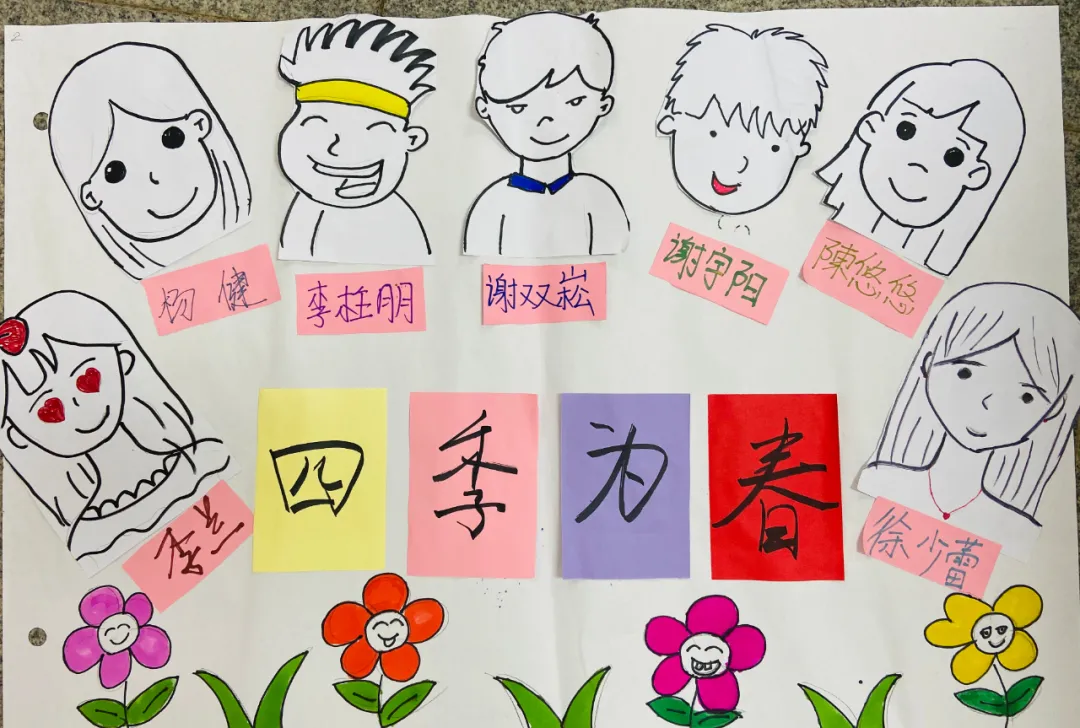 ▲小组宣传画,寓意:四季为春的含义是希望我们教师每时每刻都能够带给学生春天般的温暖,让学生如沐春风,生活中充满阳光️。同时,期盼我们的学生,未来能够四季为春,生机盎然!