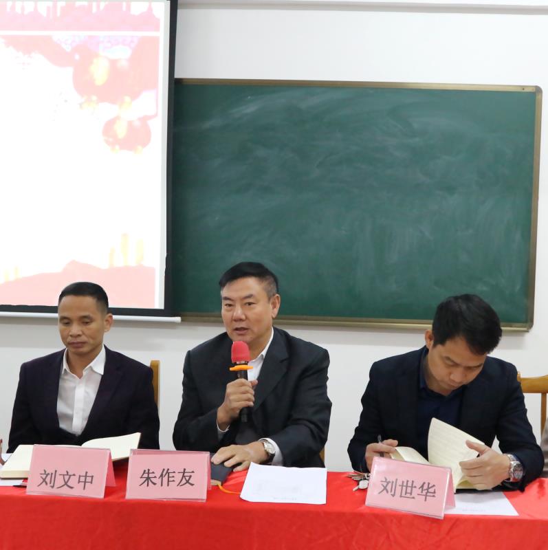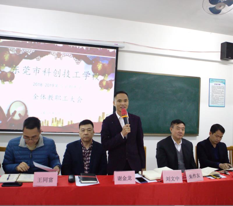 一元复始,万象更新。2月23日下午三点整,我校举行了2018~2019年第二学期第一次全体教职工大会。出席本次大会的人员有:集团董事长刘文中先生,校长朱作友先生、执行董事兼常务副校长谢金龙先生、董事刘世华先生、学校各部门负责人以及全校教职工。大会由学校办公室主任廖彩卫老师主持。