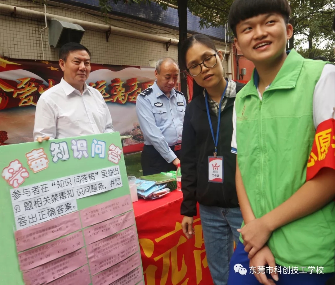 为进一步提高全体师生抵制毒品的意识和能力,2018年11月20日,我校邀请东莞市大岭山镇公安分局以及“社区戒毒和社区康复”工作站的工作人员为全校师生开展了一场以“远离毒品,营造无毒校园”为主题的禁毒宣传活动。