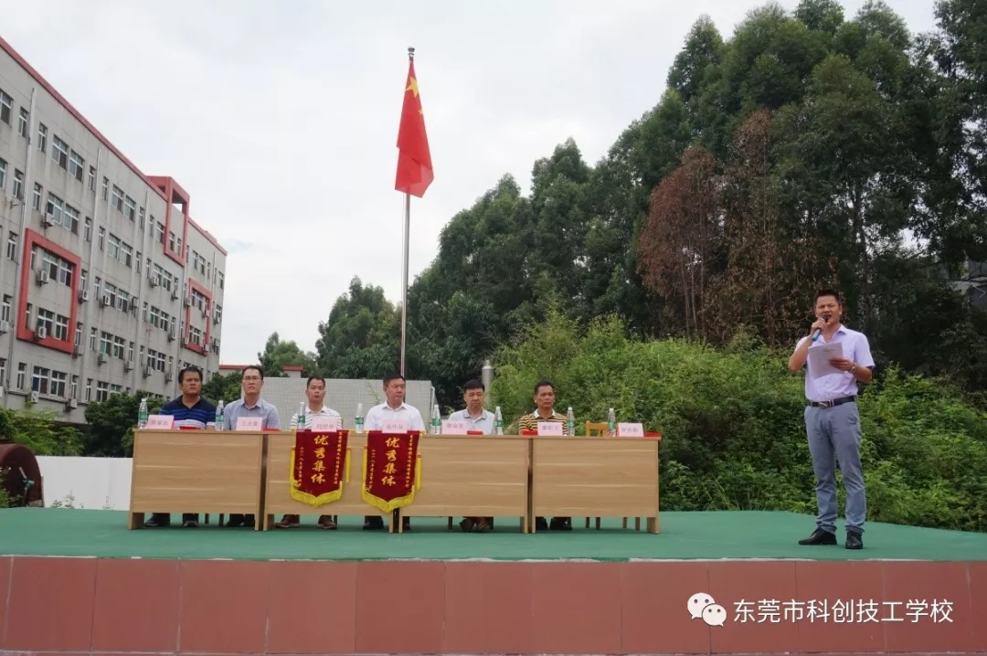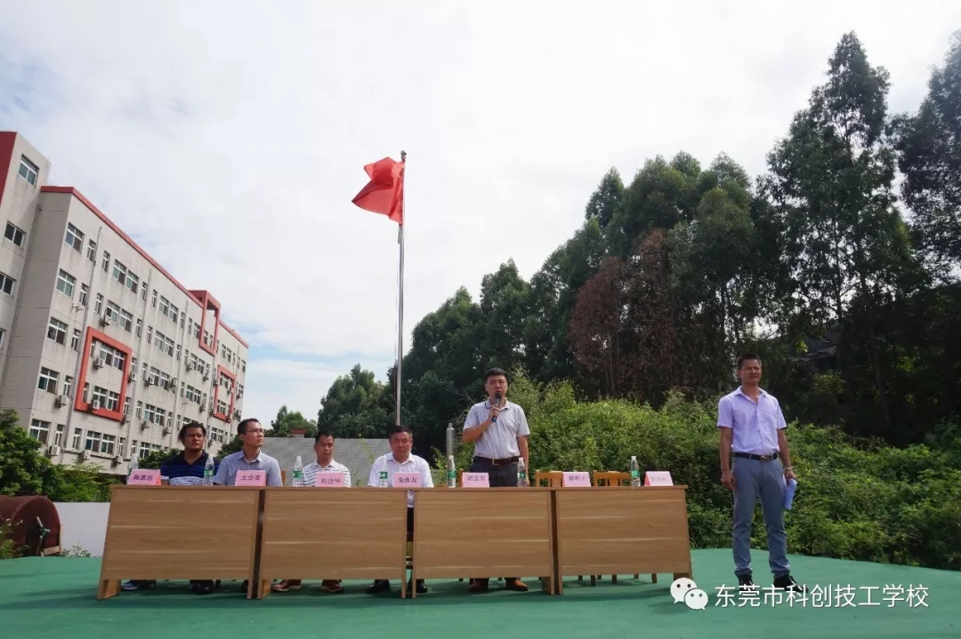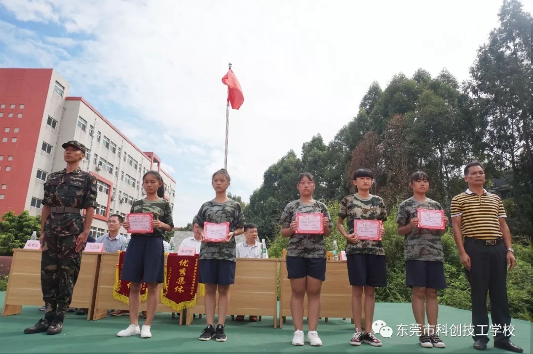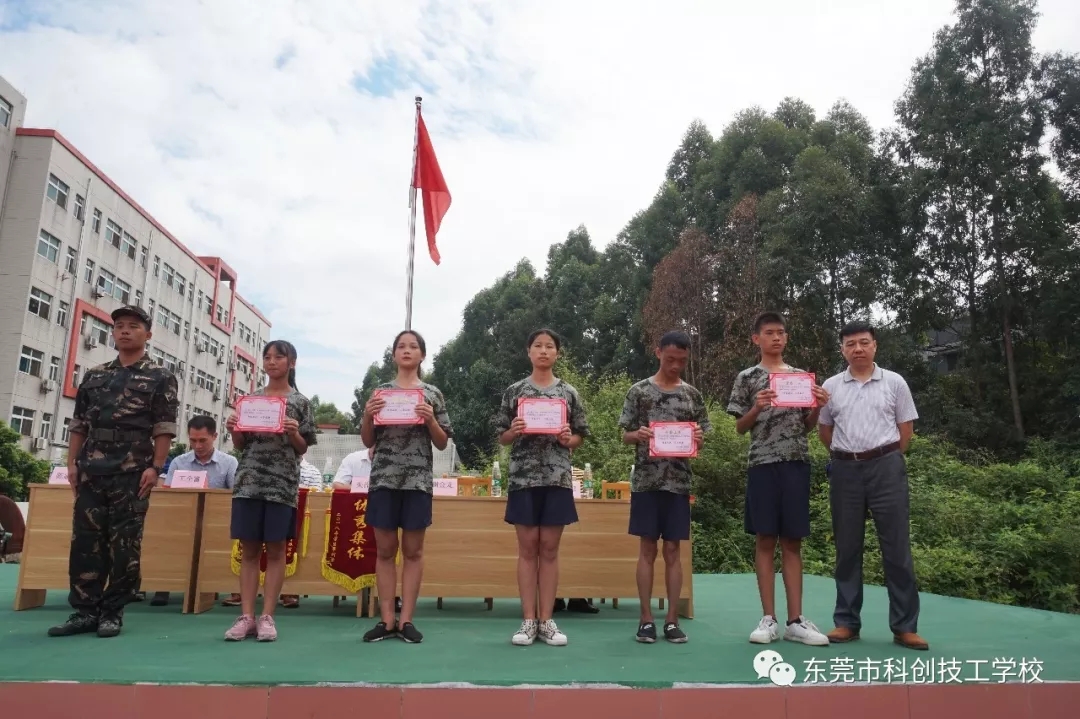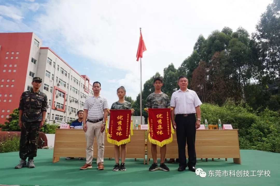 2018年8月26日上午9时,东莞市科创技工学校隆重举行2018年秋季新生军训闭营仪式。校长朱作友先生、执行董事兼常务副校长谢金龙先生以及学校各部门负责人携全体教师一同参加。仪式包括奏《国歌》、领导检阅方队、学生代表发言、表彰先进集体和个人、领导总结讲话等五项内容,由学生科罗科长主持。