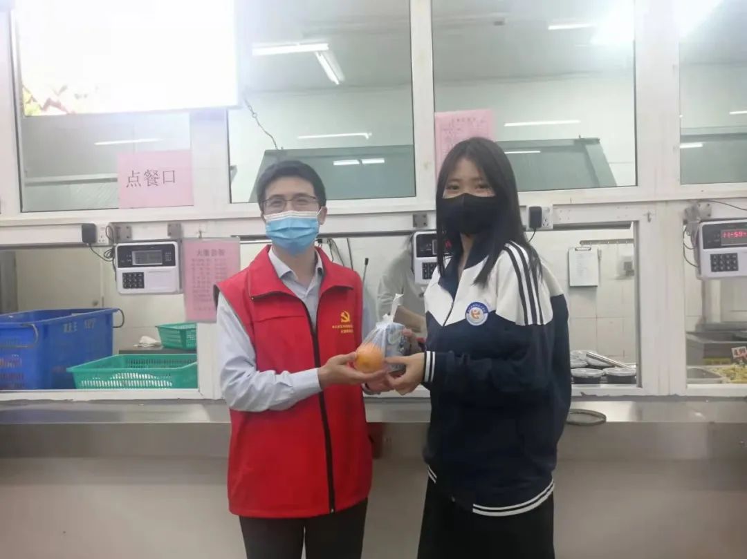 自校园实施封闭管理以来,我校坚持每天为留校师生提供牛奶和水果等,让同学们切身感受到学校的关心关怀。吴科长在校督导疫情防控工作期间也多次以志愿者的身份参与爱心活动,亲手为同学们送上牛奶和水果。