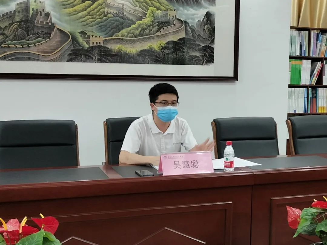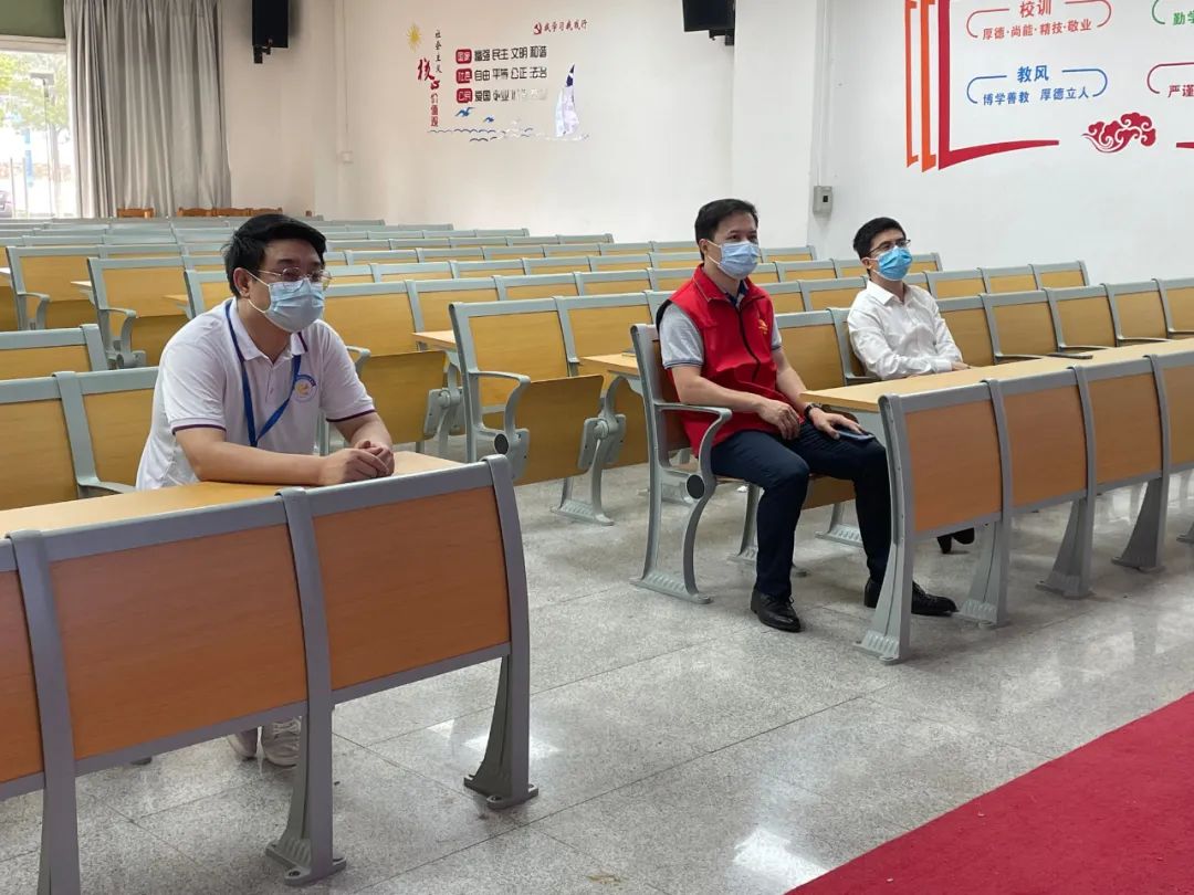 彭文涛校长代表我校对吴慧聪科长的到来表示欢迎,并就当前我校疫情防控工作开展情况作了详细汇报,吴科长通过听取汇报了解了我校自校园封闭管理以来的各项疫情防控措施以及线上教学开展情况,查看了师生健康信息管理台账。