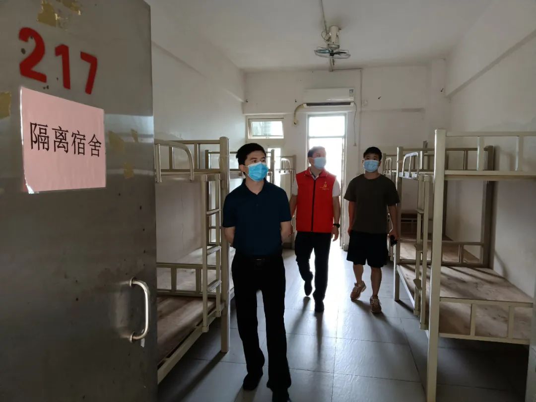 吴科长走入隔离宿舍,对我校隔离宿舍的设置标准、工作流程、环境布置等方面进行检查和督导,并提出了更高要求。