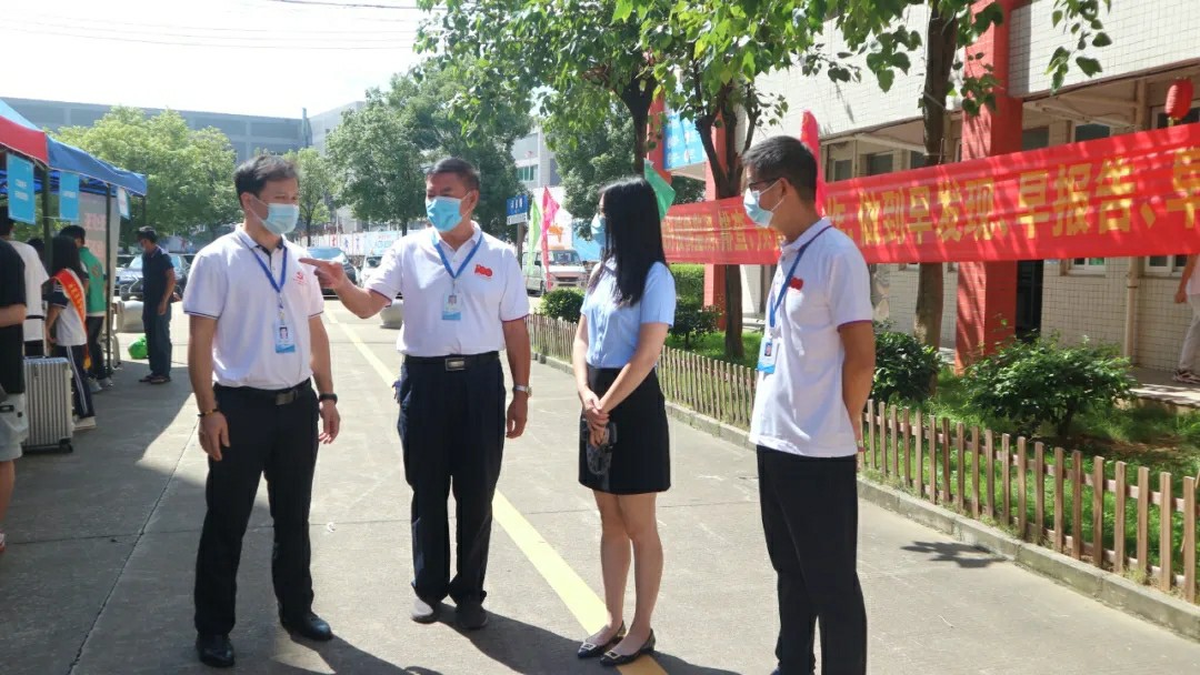 上午十点,东莞市人力资源和社会保障局大岭山分局李惠霞老师来到了我校迎新现场,在朱作友校长、彭文涛常务副校长的陪同下现场了解新生入学和防疫措施落实情况。