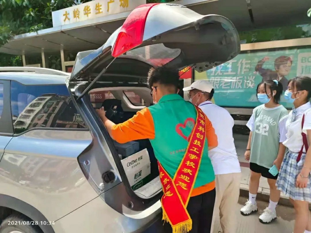 今年,我校依旧在大岭山华生广场设置迎新点,安排了老师和志愿者迎接各地的新生及家长。