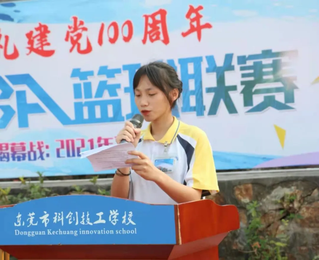为向建党100周年献礼,积极响应全民运动的号召,全力推动校园体育运动的蓬勃发展,全面展示我校学生的春春活力,进一步加强体育锻炼,提高凝聚力,丰富课余生活,让同学们有一个充分展现自我的平台。3月15日下午,东莞市科创技工学校2020-2021赛季KCBA篮球联赛在篮球场正式开幕。常务副校长彭文涛先生、德育副校长李小环先生、办公室主任罗海杭老师、教务科科长王同富老师、总务科科长陈家忠老师、主裁判长白华轩老师、副裁判长廖明运老师和王思原老师,以及36支参赛代表队参加了开幕式。开幕式由我校2019级会计专业学生、篮球爱好者李晶晶同学主持。