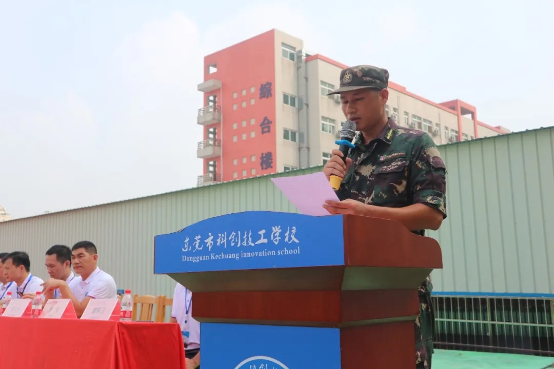 9月6日上午,东莞市科创技工学校军训闭营仪式在学校运动场隆重举行。董事长刘文中先生、校长朱作友先生、董事刘世华先生、常务副校长彭文涛先生、总教官钟灵先生及学校各职能部门负责人出席本次会议。