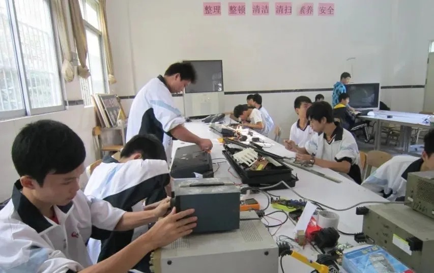 学校教学师资力量雄厚,教学设施设备完善。建有10个计算机房,一体机电脑500余台、机电一体化实训室、电工实训室、机器人实训室、无人机实训室、钢琴教室、舞蹈排练厅、电子商务实训平台、多媒体教室、汽车实训车间、汽车美容车间、美术室、市场营销实训室、图书馆等。