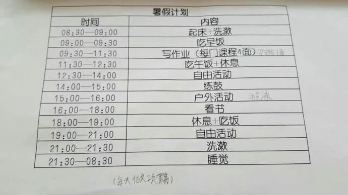 这个假期要做个规律生活的好少年