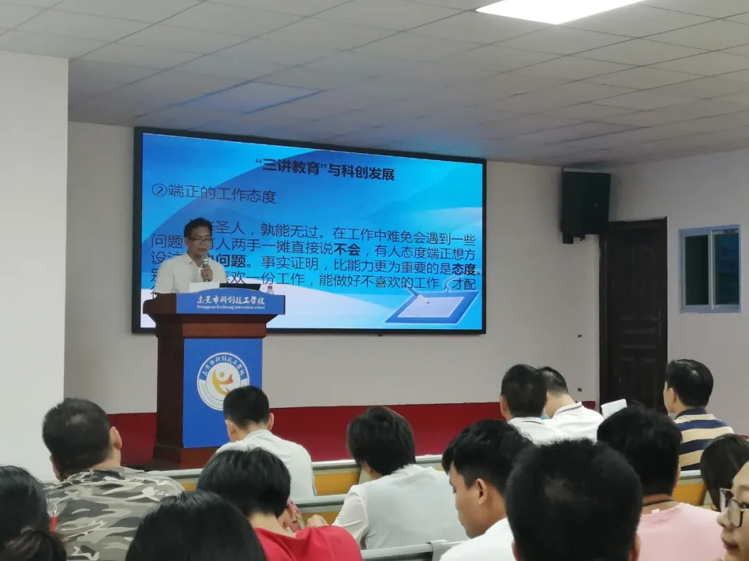 廖老师说:教师必须具备终身学习的动力和毅力。教师应该以教育为本,重视学习,改造学习。全体科创教师,要做“四有”教师:有理想信念,有道德情操,有扎实知识,有仁爱之心。