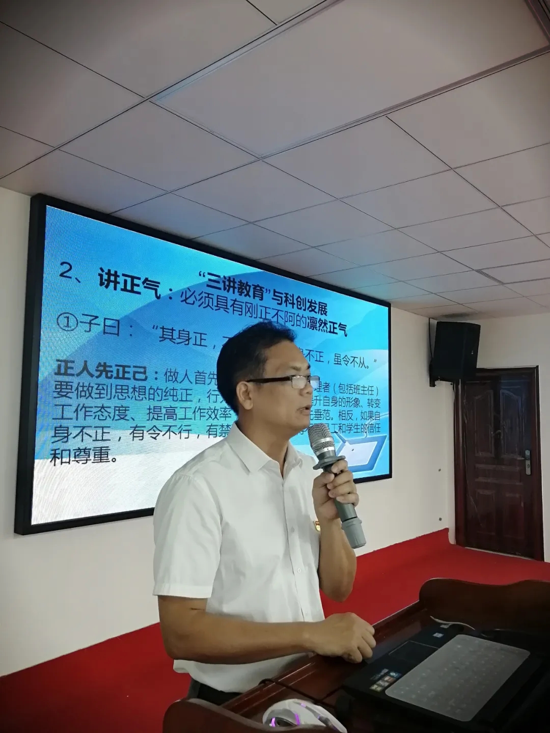 “正人先正已,做人,特别是做人民教师,首先心术要正,思想要纯正,行为要端正”;
