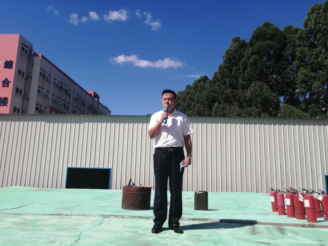 演练结束之后,朱作友校长针对此次演习发表了总结讲话,他首先肯定了这次演练的成果,接着他向全校师生普及了消防安全知识,分享了火灾逃生的方法和技巧,对学校防火防灾提出了更高的要求。