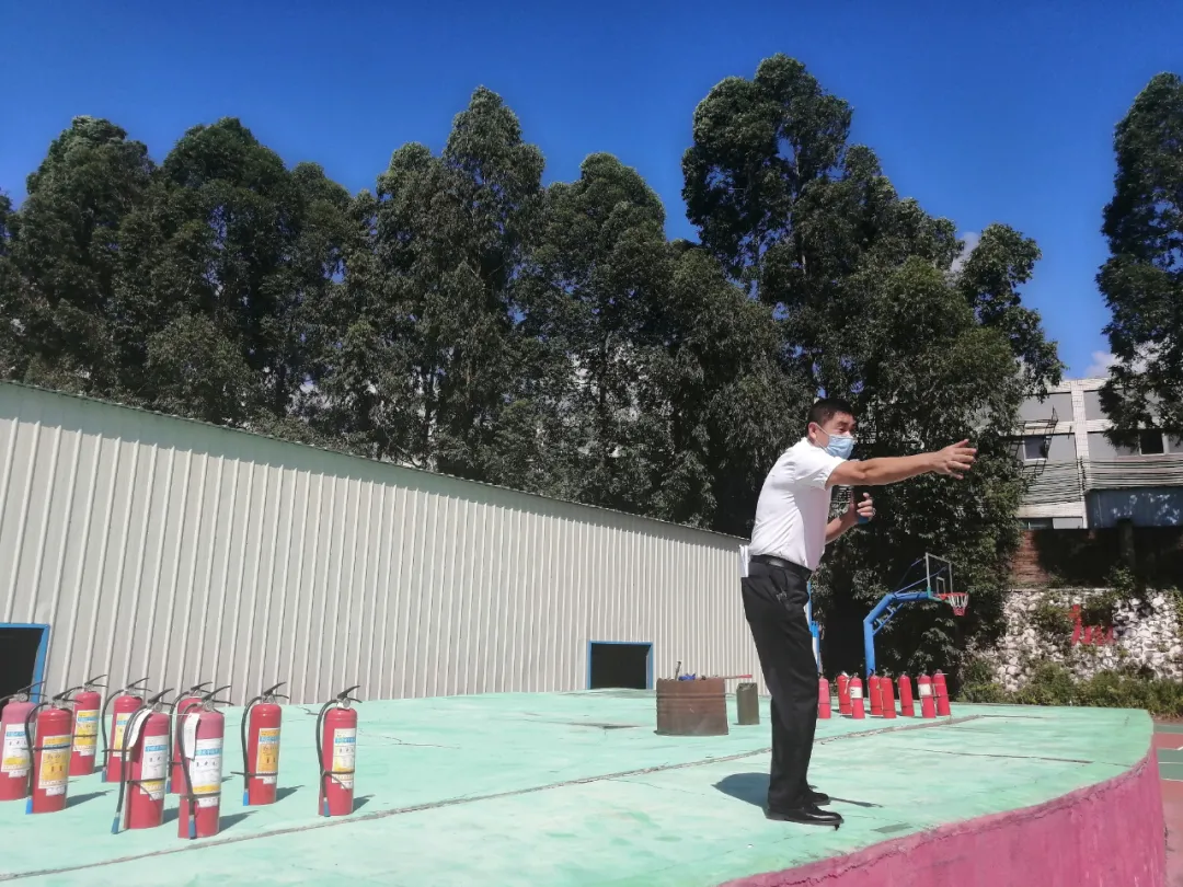 随后,部分教职员工和学生进行了灭火的实践操作训练。整个过程紧张有序,实用性强,收到了预期的效果。