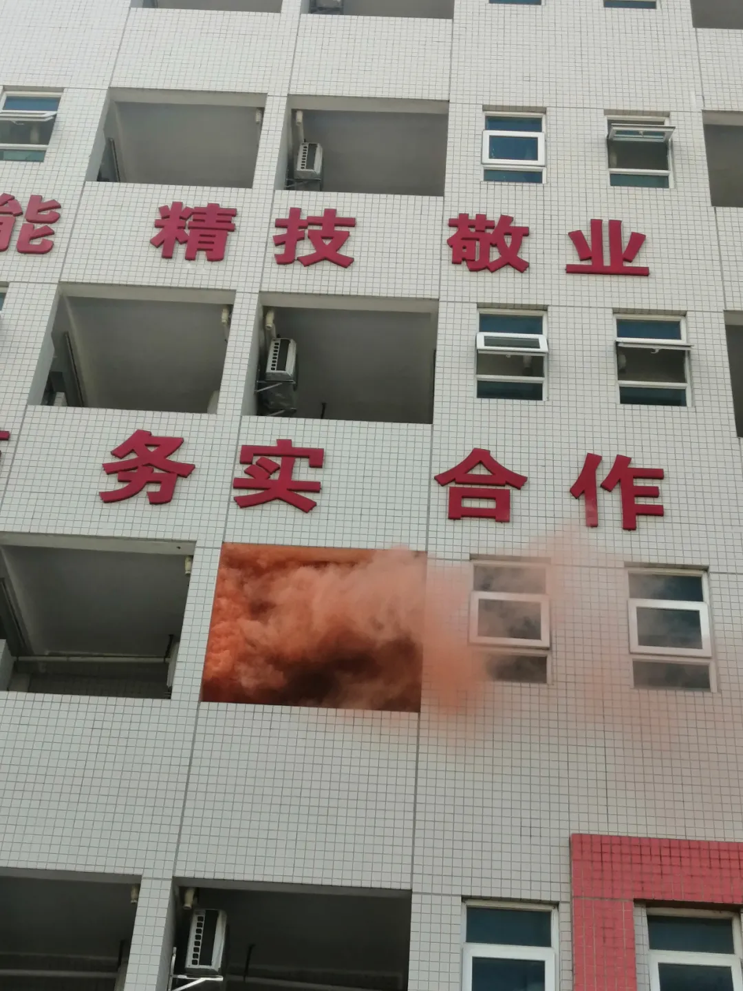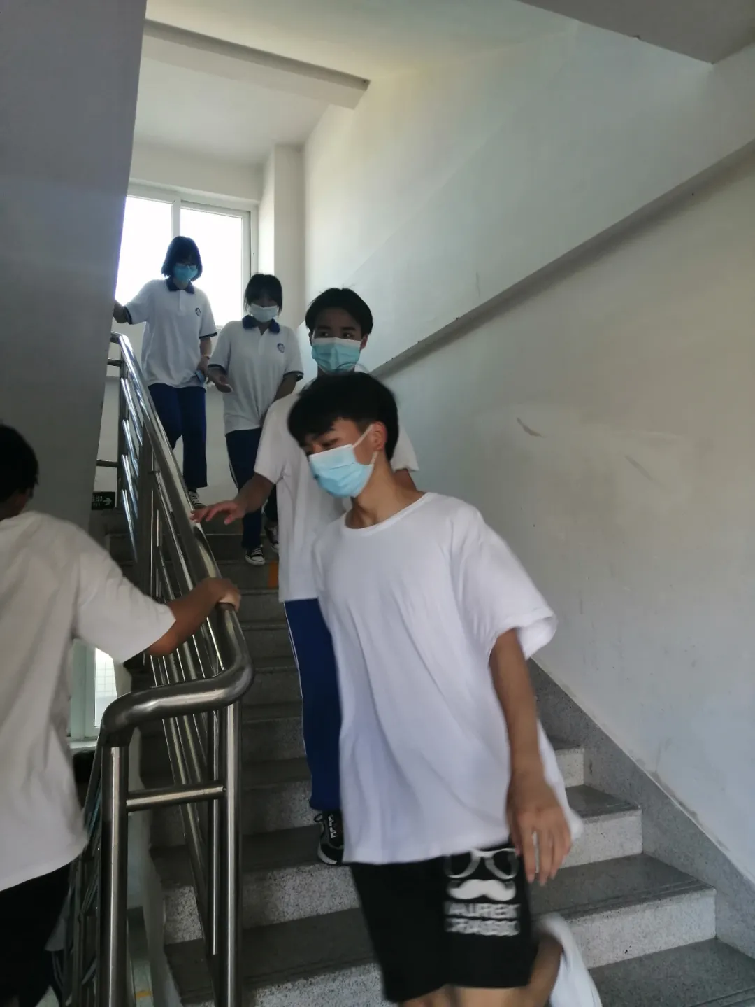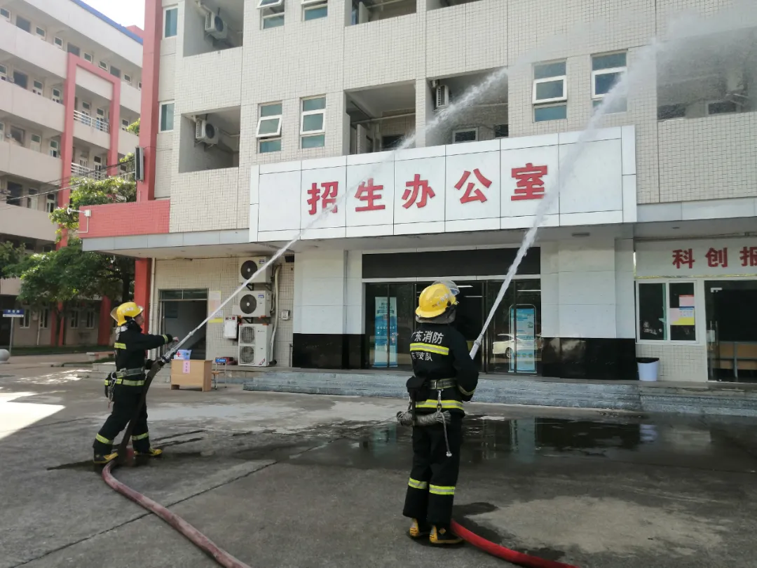教学楼二楼某课室为假定起火部位,任课教师在发现火情后,立即疏散上课学生,所有学生按照逃生演练方案设定的逃生路线,迅速而有序地撤离到指定位置。同时,任课老师紧急向学校领导报告火灾情况,拨打火警电话,消防工作人员全副武装赶到现场,及时对起火点进行喷水灭火,火势很快得到控制。演练过程中,大家各司其职,师生临“危”不乱,井然有序。