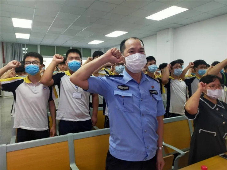 活动当天,镇禁毒办、镇公安分局、镇司法分局、镇关工委部门工作人员、我校彭文涛副校长及学校部分学生在"科创报告厅“进行庄重的“禁毒宣誓”:“我是中华民族的儿女,不忘耻辱,坚决与毒魔作斗争,珍爱生命,拒绝毒品,保证不吸毒、不贩毒、不制毒、不种毒,积极检举吸贩毒行为,自觉抵御毒品的侵蚀,积极投身于禁毒斗争行列,我将履行禁毒誓言,为国家禁毒事业作出自己应有的贡献。”