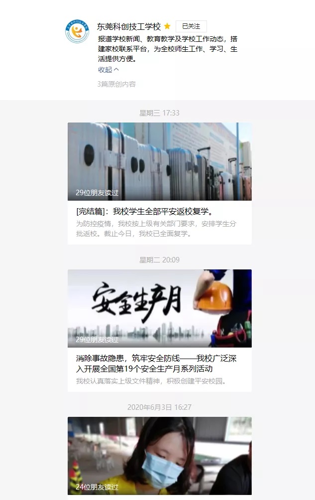 本公众号名称为“东莞市科创技工学校”,属微信公众号“服务号”,微信公众号官方限定“服务号”每月仅能推送四篇公众号文章,现已不能满足学校当前的实际使用需求。在保留本公众号的基础上,我校新开通了微信公众号“订阅号”,名称为”东莞科创技工学校“,欢迎大家通过扫描下方二维码关注,了解更多学校新闻。