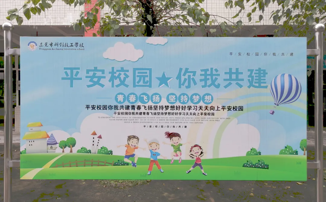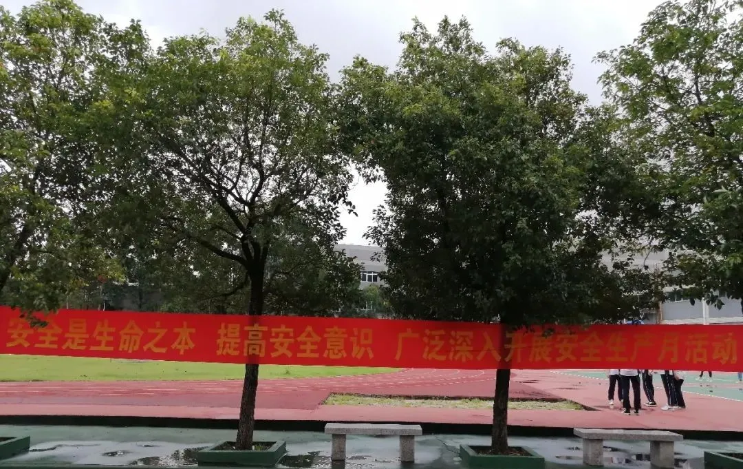 为认真贯彻落实《东莞市2020年“安全生产月”和“安全生产莞邑(万里)行”活动方案》(东安办【2020】77号)的文件精神,全力做好校园安全工作,确保学校师生生命和财产安全。校园内多处显眼位置悬挂了“安全生产月”横幅:“安全是生命之本,提高安全意识,广泛深入开展安全生产月活动”、“普及安全生产知识,提高全民安全意识,创建平安校园”、“ 珍爱生命,预防溺水”……