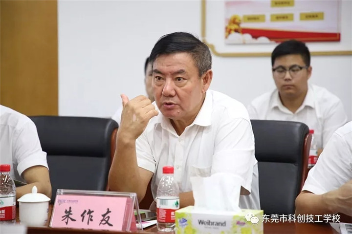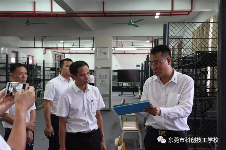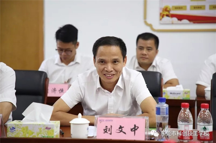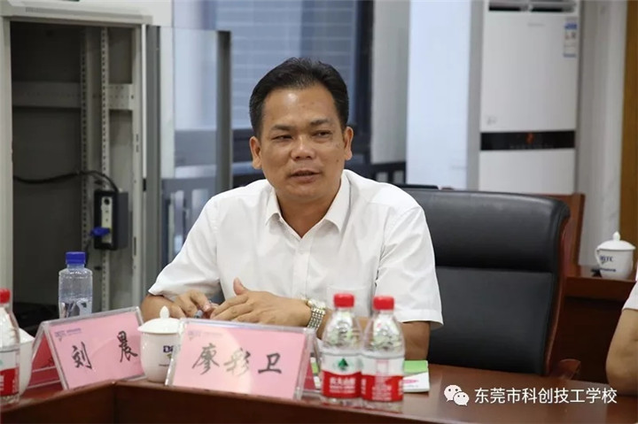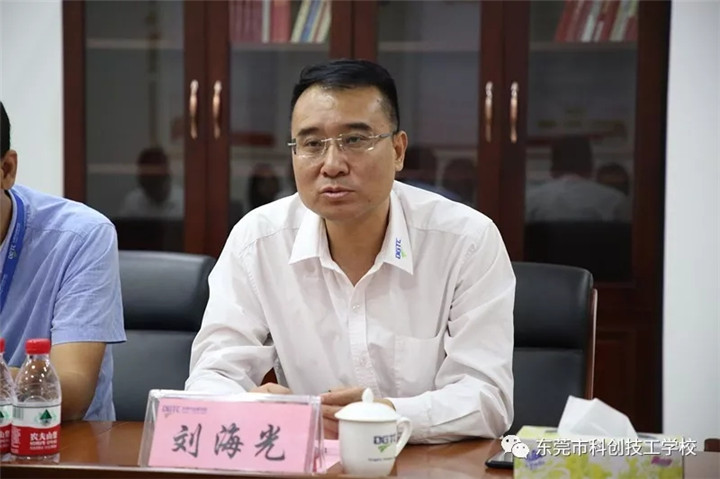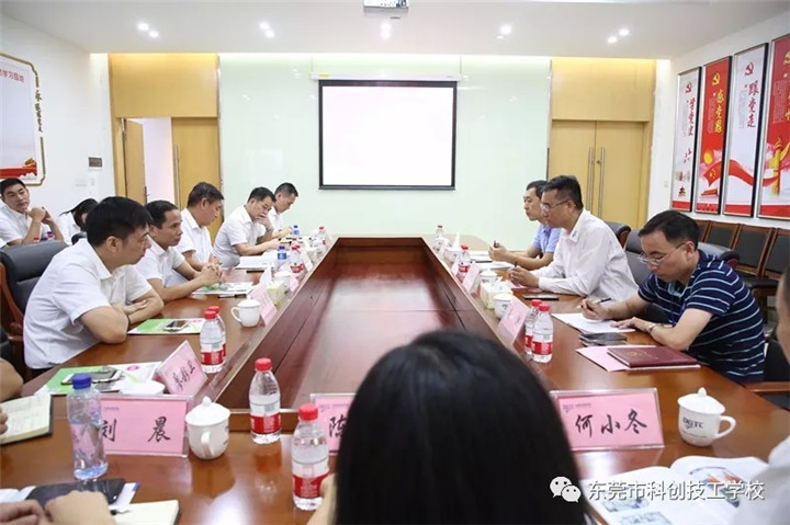 东莞市技师学院刘海光院长、吕猛主任、黄汉昌处长、高洪处长等校领导热情接待了我校一行。刘院长首先代表学院对我校的到访表示热烈欢迎。随后,热情洋溢地向我们详细介绍了东莞市技师学院的基本情况,包括校园文化建设、学生常规管理、学校教育教学等。给我校参观的领导和老师们留下了深刻的印象。