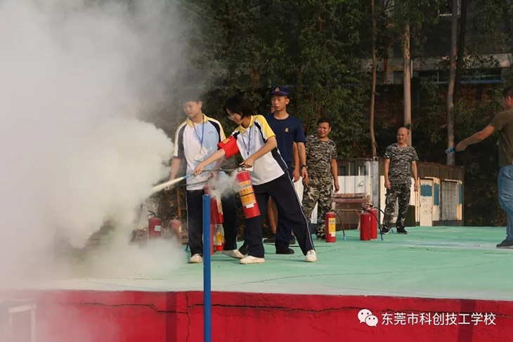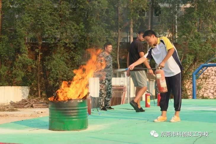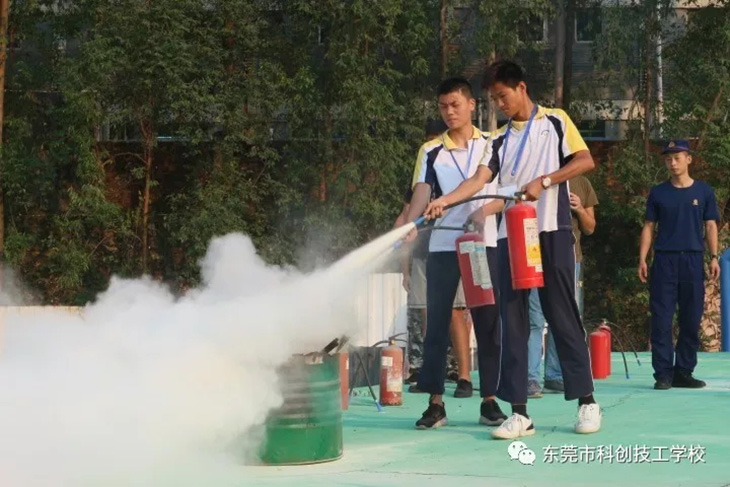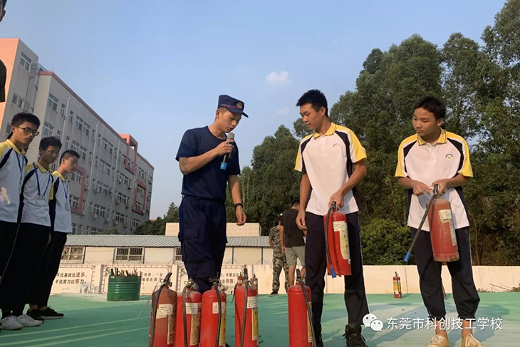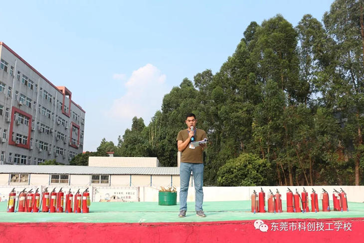 随后,消防员为我们示范讲解了消防器材的使用方法。