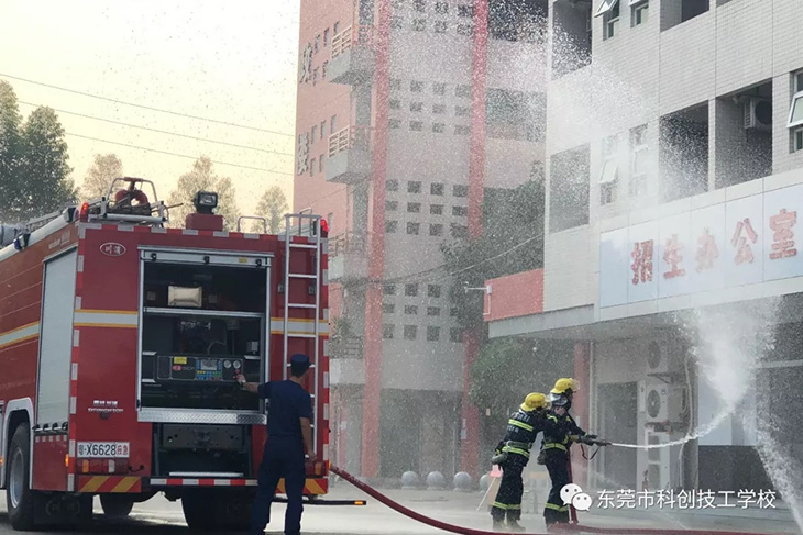 “火警”就是命令, 接到“警情”的大岭山应急管理部门的消防队员火速赶到“现场”迅速开展救援活动,对教学楼二楼“火源”处实施了灭火等一系列的救援行动。