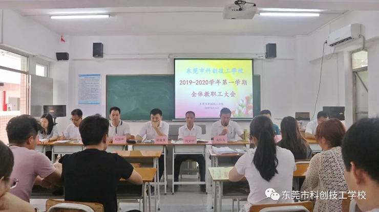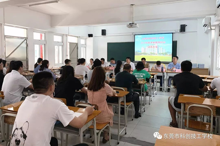 大会由学校办公室主任廖彩卫老师主持,参会的领导有董事刘世华先生、执行董事兼常务副校长谢金龙先生、教务科王同富科长、学生科康济恒科长、招生办陈笑宜主任、总务科科长陈家忠先生等。