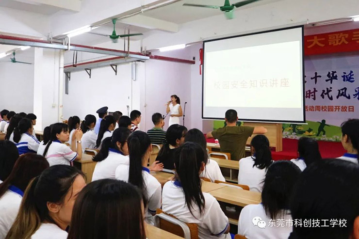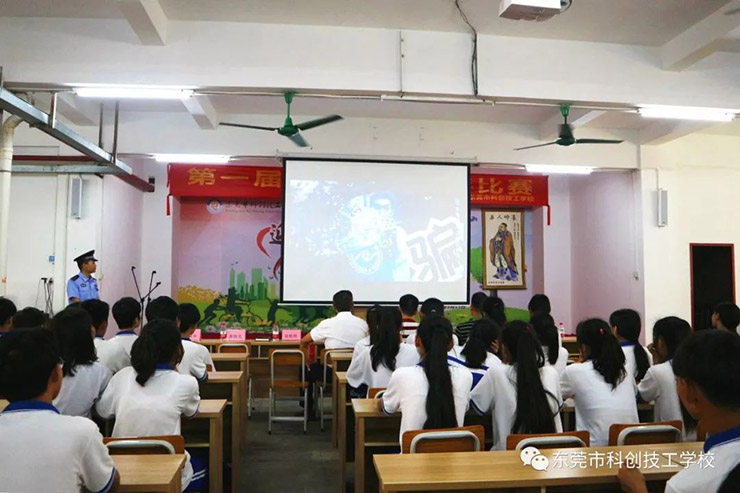 昨天下午四点,我校特别邀请大岭山公安分局杨屋派出所徐胜胜警长为同学进行了一场具有特殊意义的“假前”“校园安全知识”讲座。
