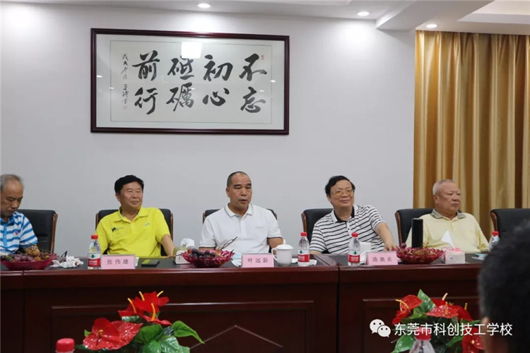 当天下午四点钟,双方在东莞市科创技工学校行政楼会议室举行座谈会。在座谈会上,刘文中董事长对叶远新会长一行的到来表示热烈的欢迎和衷心的感谢,并向叶远新会长和其他商会领导汇报了学校的办学理念、办学规模、专业特色和发展方向等办学情况,请叶会长和其他商会领导对我校多多关心和指导。