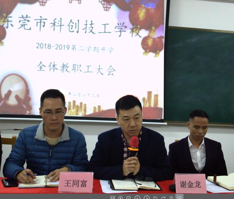 一元复始,万象更新。2月23日下午三点整,我校举行了2018~2019年第二学期第一次全体教职工大会。出席本次大会的人员有:集团董事长刘文中先生,校长朱作友先生、执行董事兼常务副校长谢金龙先生、董事刘世华先生、学校各部门负责人以及全校教职工。大会由学校办公室主任廖彩卫老师主持。
