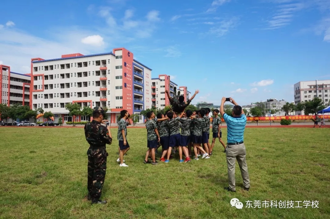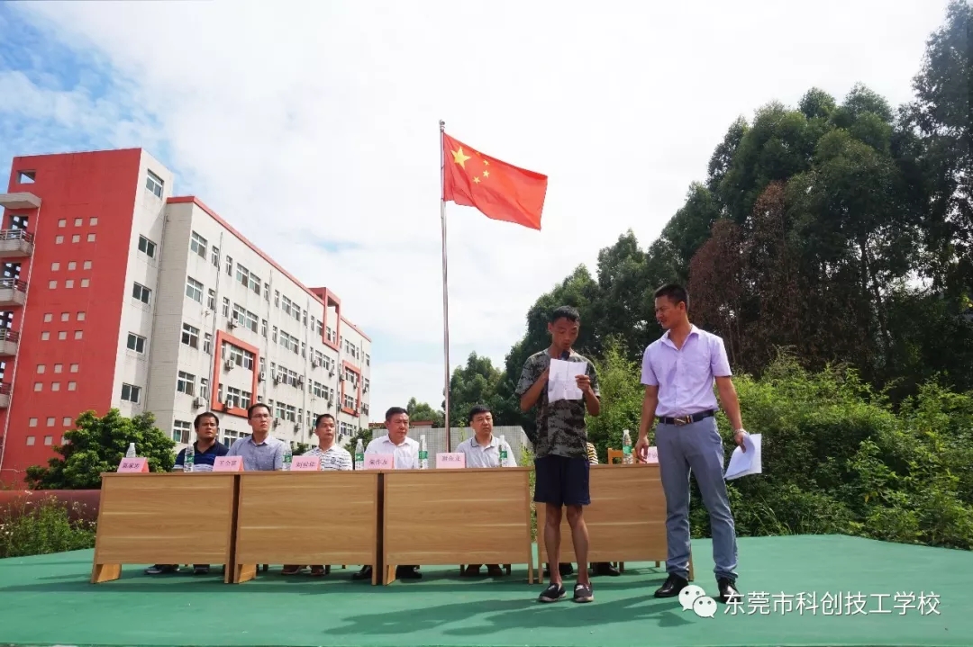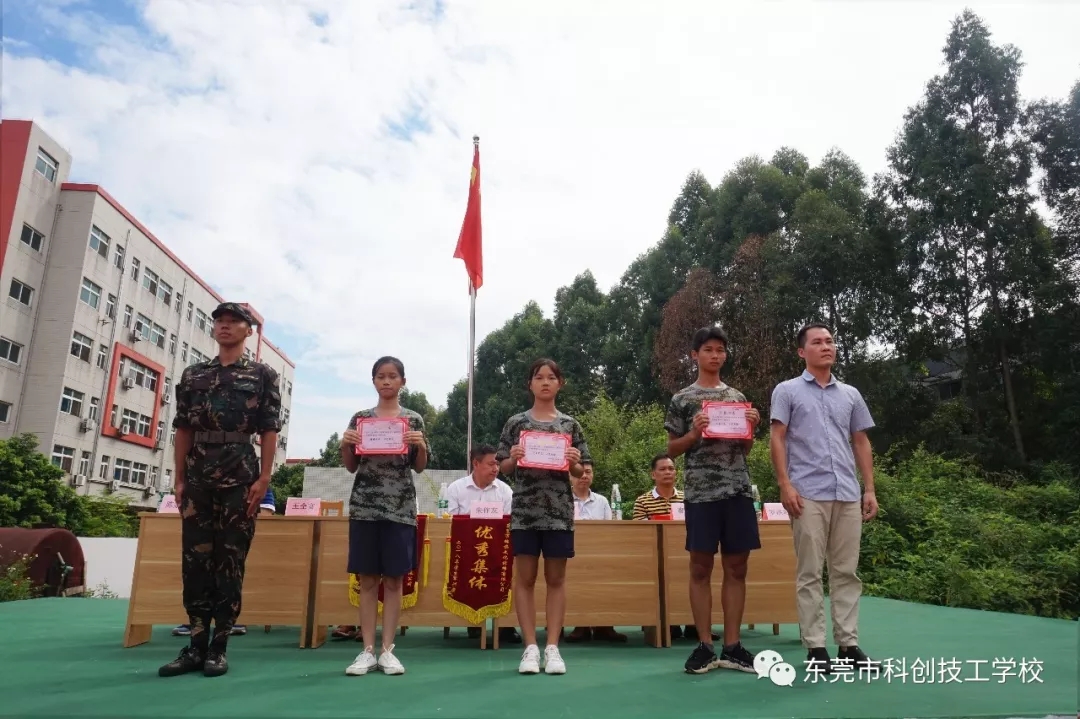 2018年8月26日上午9时,东莞市科创技工学校隆重举行2018年秋季新生军训闭营仪式。校长朱作友先生、执行董事兼常务副校长谢金龙先生以及学校各部门负责人携全体教师一同参加。仪式包括奏《国歌》、领导检阅方队、学生代表发言、表彰先进集体和个人、领导总结讲话等五项内容,由学生科罗科长主持。