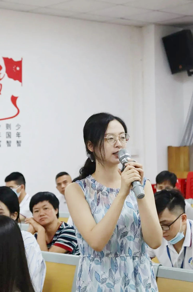 郑煜老师作为新教师代表在培训动员会议上发言。她讲述了自己作为新聘教师的感想与感悟,表示一定会珍惜这次难得的培训机会,以饱满的热情、勤恳扎实的作风投入学习,提高自身综合素质。她的发言情真意切,洋溢着新教师团队的热情与活力,充分展现了教师们对未来的期望与憧憬。