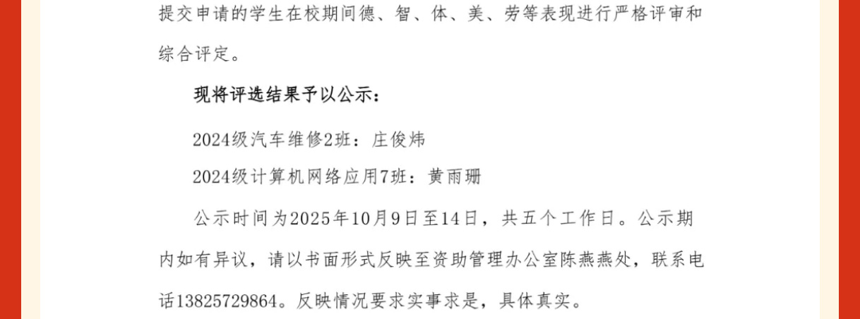 下一篇:公示丨2024-2025学年度中等职业教育国家奖学金推荐参评学生名单公示