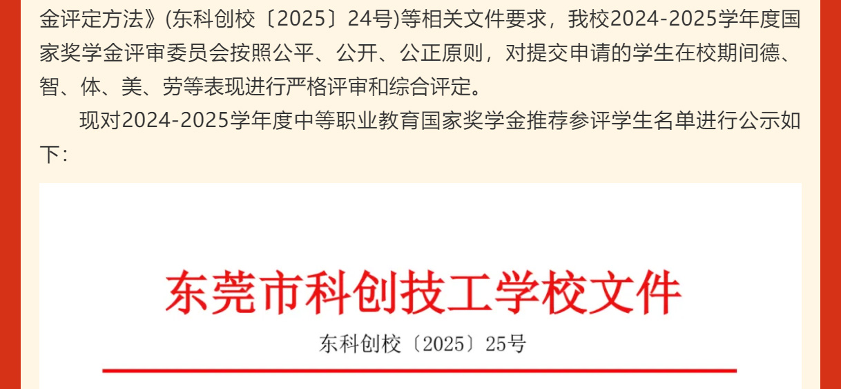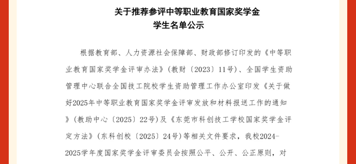 公示丨2024-2025学年度中等职业教育国家奖学金推荐参评学生名单公示