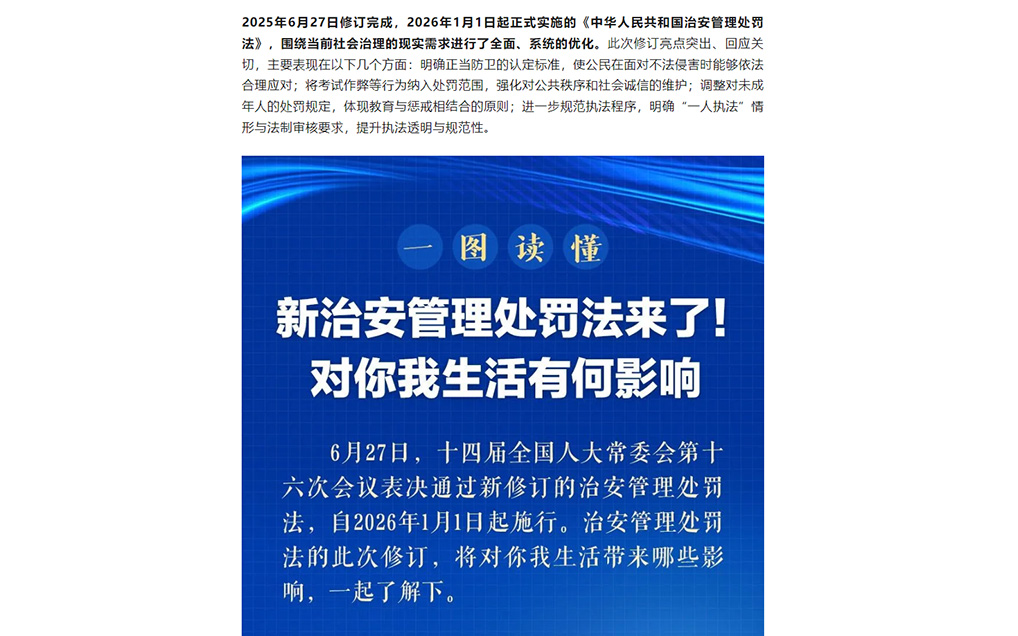 法治副校长入校划重点!一文读懂2026年最新《治安管理处罚法》